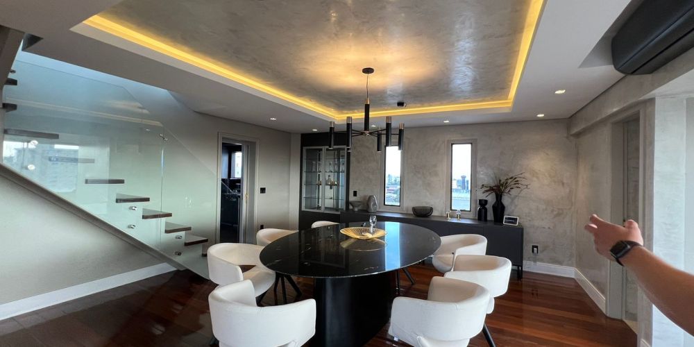 Fantástica cobertura duplex no centro de Canoas, com 590m2 de área total, 4 dormitórios sendo 1 suíte master com closet e banheira. Lavanderia com dependencia de empregada. Living 3 ambientes. 2 lavabos. Sauna, piscina borda infinita e espaço gourmet com Parrilleira. Duas entradas sendo uma social e uma de serviço. 12° andar com vista eterna de 360°